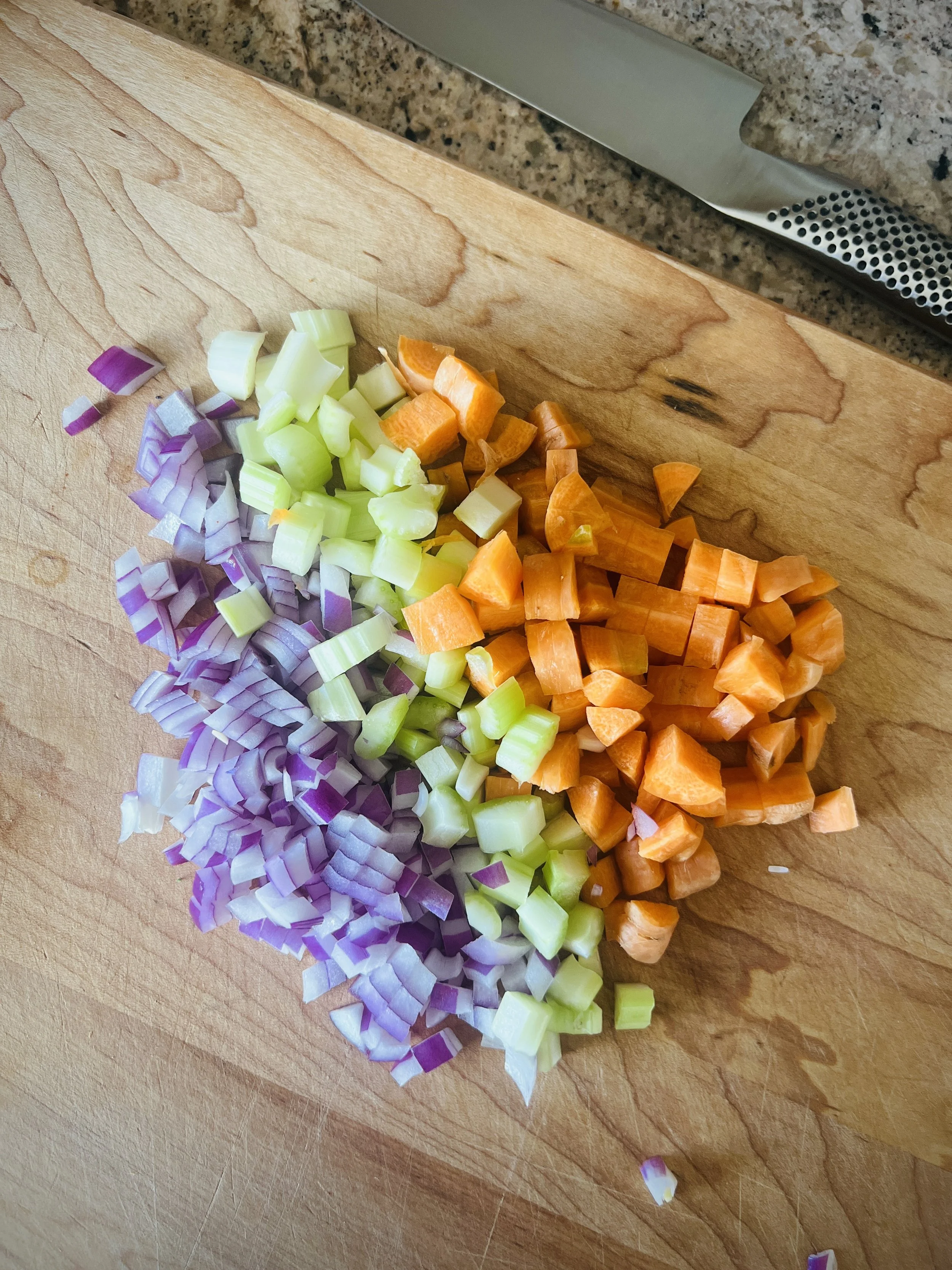 Who are you calling mireopix (pronounced meer-PWAH)? It is the holy trinity of vegetables for the French flavor base of soups, stews, stocks, sauces, and meat bowls. The members of the mirepoix gang are Commander Carrot, Sergeant Celery, and our Godfather, the Onion. These three vegetables are the aromatic foundation to building flavor, and why not add some veggies to your bowl of vital nutrients, AKA the OFBB.