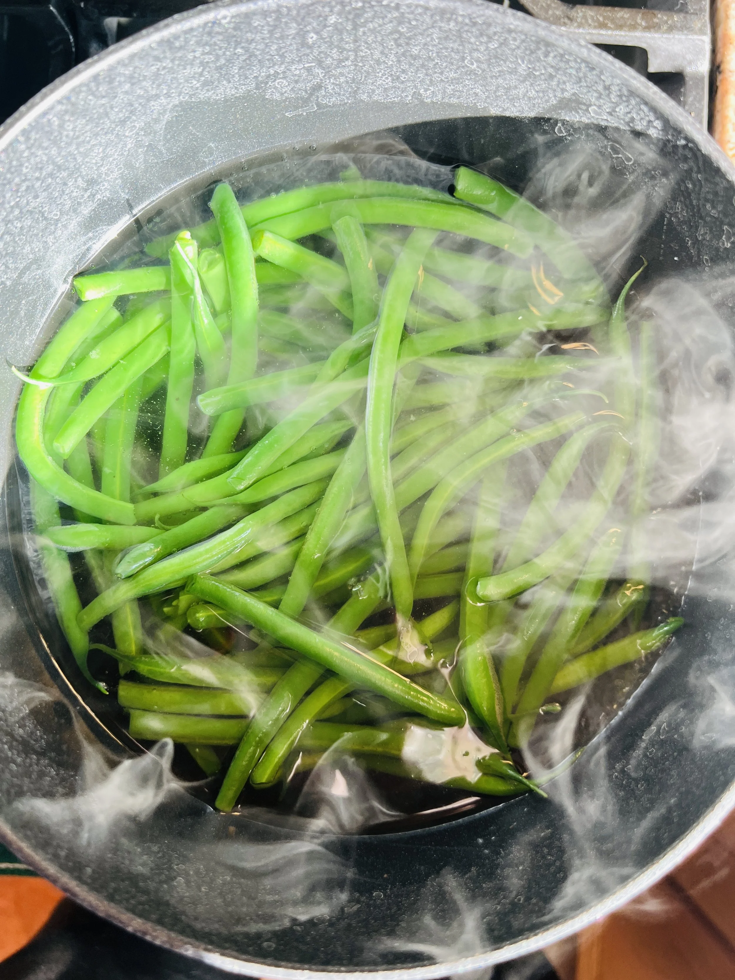 We are going full send on green beans today. Opting NOT to drown them in cream and cheese (but maybe a touch of butter🙃). We are highlighting the assets of this green vegetable and making a salad! (Pause for applause.)