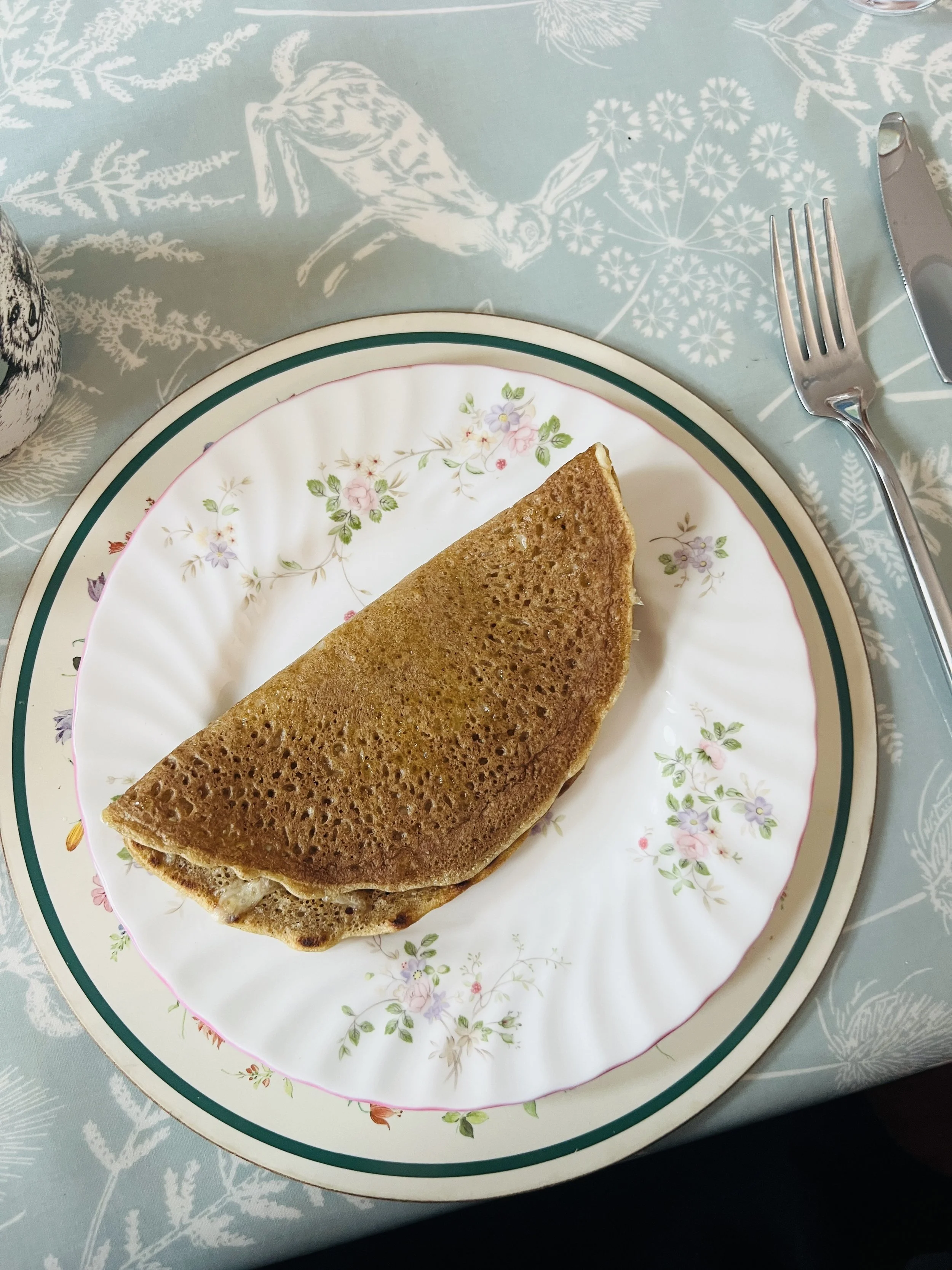 Day nine: Out of the city and into the countryside🥰. Still feeling under the weather, it felt great to sloooooow down and get some good ole English hospitality. My friend and her parents went above and beyond to make us feel at home and keep our plates and cups FULL. Starting with the most important meal of the day, breakfast! Served in courses. First yogurt, granola, and fresh pears from the garden. Satisfying and a meal on its own. Every meal we had felt like an event, using the nice china with a water glass and a juice glass, and a charger below each plate. Each charger had a different animal on it, so every meal time I would switch my place so I could have a different animal. (Cursing myself, I didn’t get a photo. Anytime I have a regret on a trip, it's animal-related.) I also opted for an oat milk latte instead of my normal black. Who is she in the English countryside?!